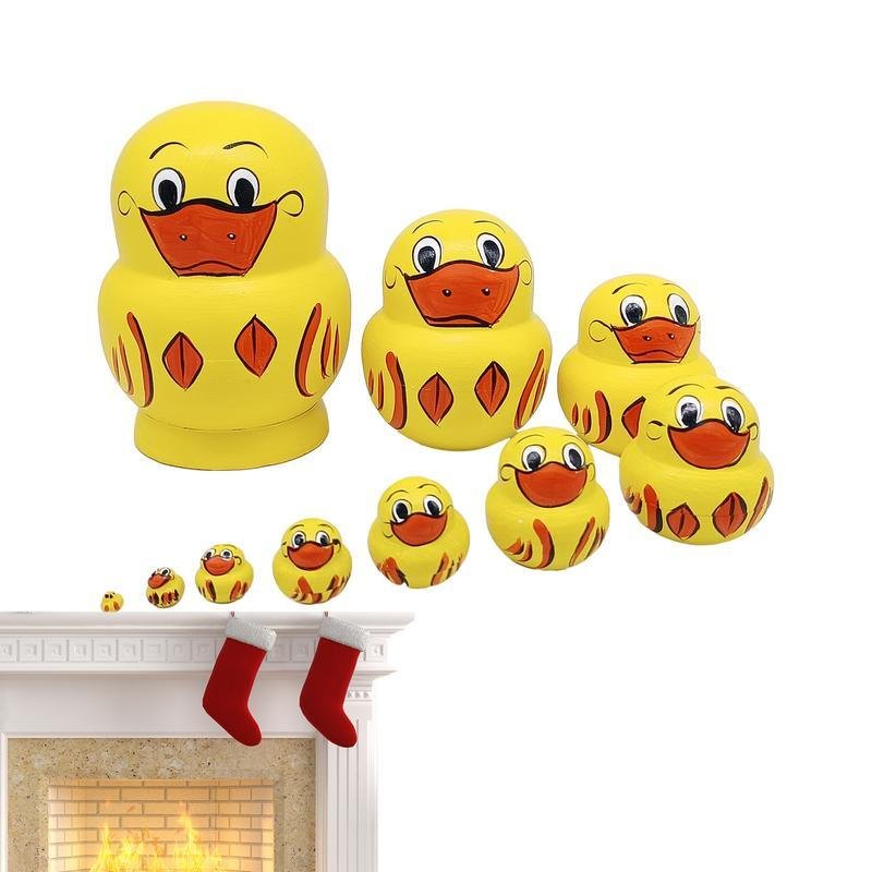 Home > 10pcs Russian Stacking Dolls Home Decor Ornaments Handmade DIY Paint Yellow Duck Basswood Russian Dolls Children Birthday Gifts