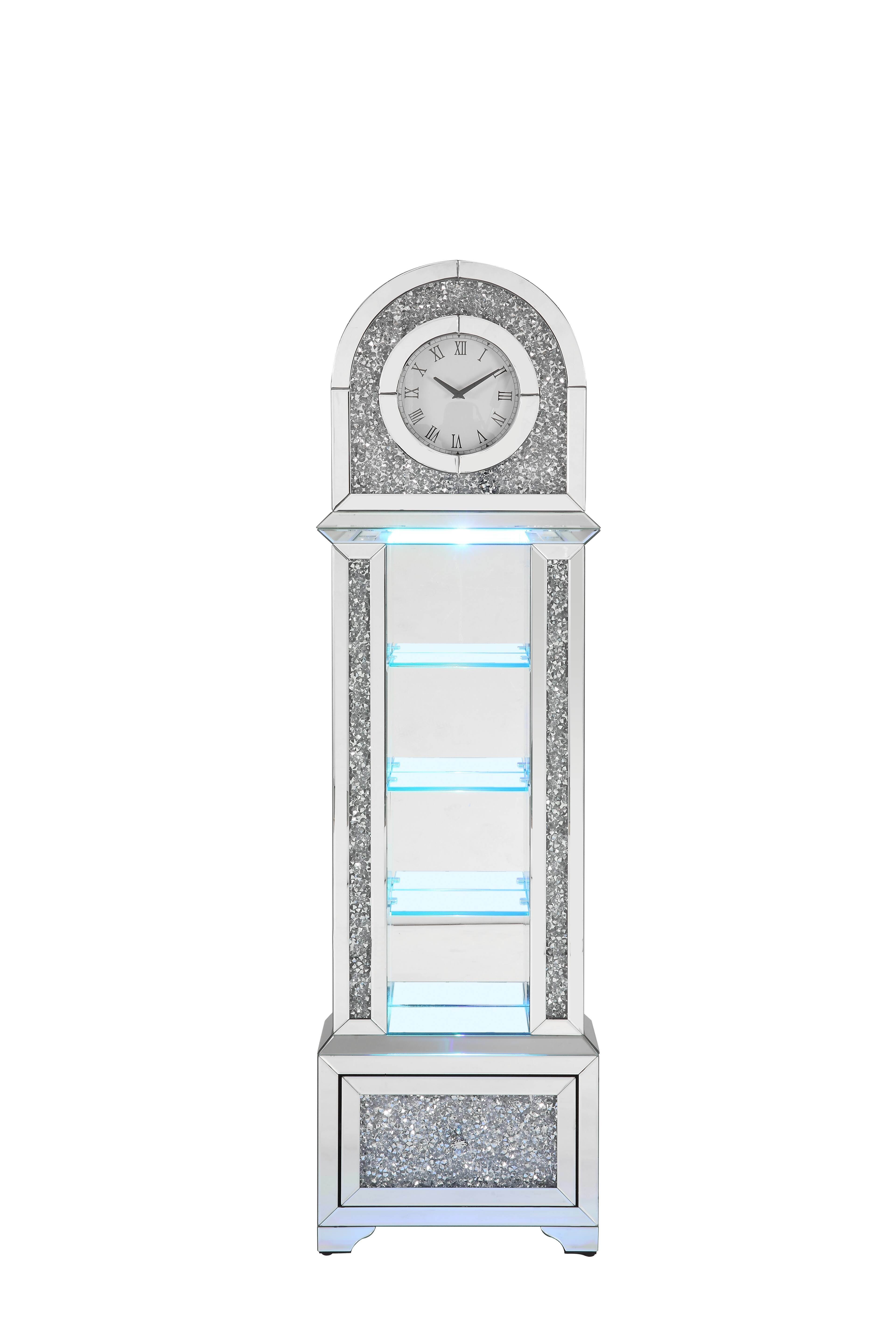 ACME Noralie GRANDFATHER CLOCK W/LED Mirrored & Faux Diamonds AC00353