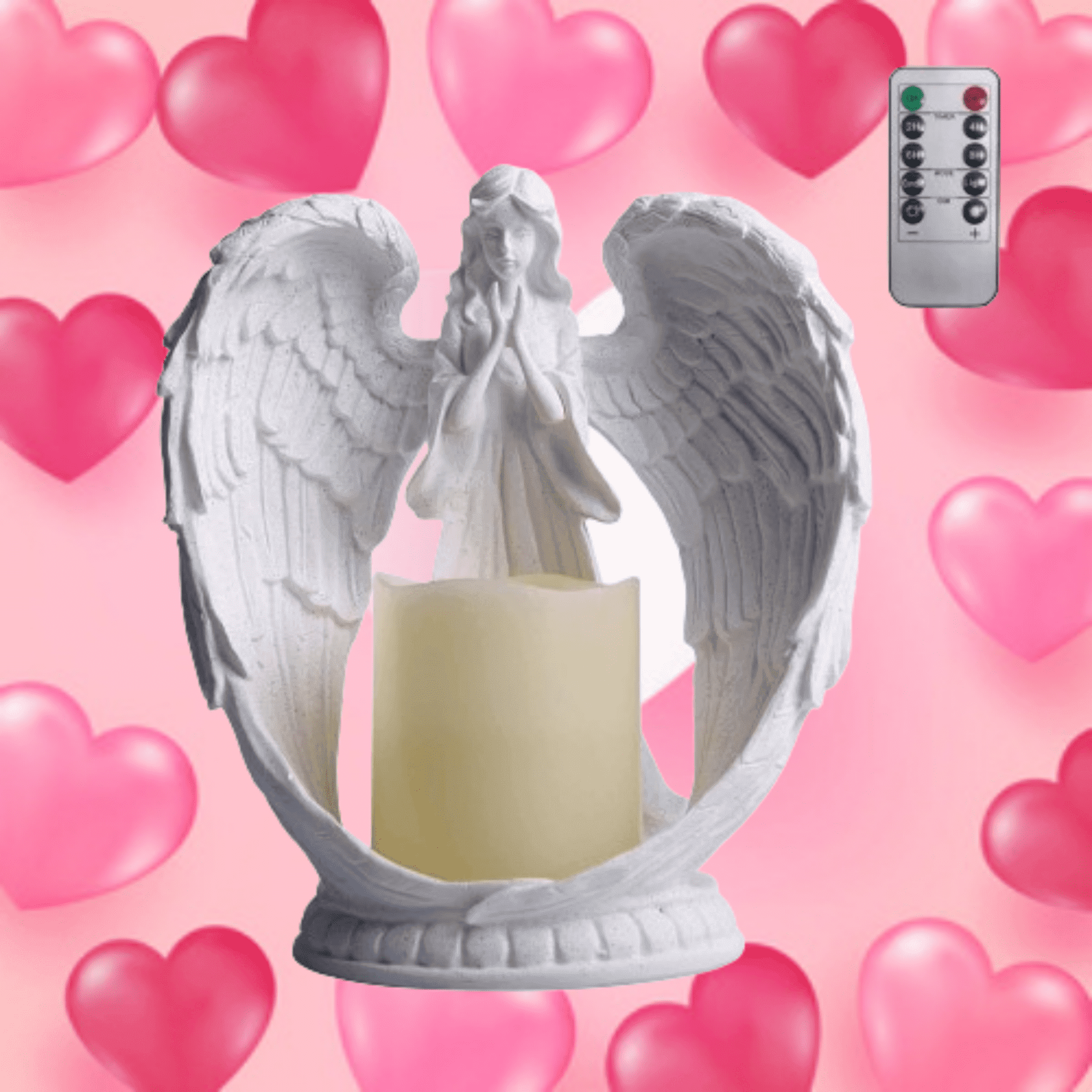 "Attention to detail, crafted as a work of art.This wings angel statue lamp is well-received and be highly praise,over 600 global ratings and score 4.7 out of 5. "Heart shaped, a gift that expresses the heart.If you are looking for home decorations or gifts,this 9in angel figurine lamp is a good choice.It is a beautiful handcrafted decoration and it is a favorite gift. This is a beautiful indoor decoration,it can be placed on tabletop or fireside or shelves, light up the orange glow of the candle and decorate for the festival.The innocent angel is an elegant gift for friends or relatives or yourself.It is beautiful fantastic gorgeous meaningful.It is a memorial ornament for loss of loved one.It is suitable for many occasions.