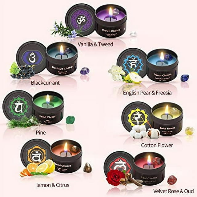 [scented candles gift set] Each chakra is represented with a specifically coloured and scented candle, plus with premium crystal and healing stones which when lit is designed to enhance certain healing energies. Together with a chakra natural healing crystal stones bracelet and gift box packaging, our chakra candles set is a good gift choice for friends and loved ones for any holiday or special event, such as valentine's day, mother's day, birthday, holiday, anniversary.
