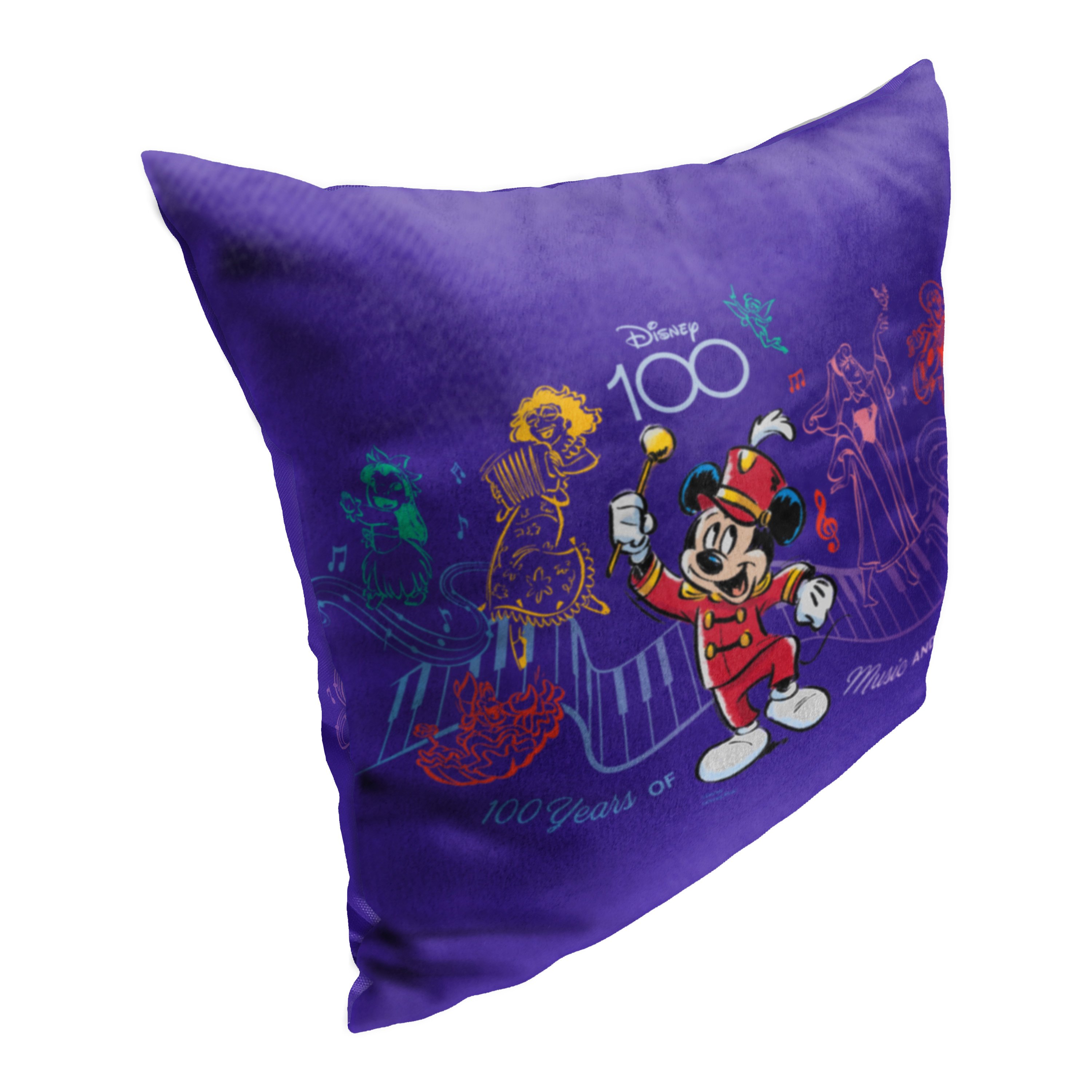 Celebrate Disney 100 Years with this "Music and Wonder" Soft and Comfortable Double Sided Pillow. Measuring 18"W x 18"L, this pillow is the perfect size for snuggling up on the couch or adding an extra touch of comfort to your bed. Featuring the same design on both sides, this pillow is as stylish as it is comfortable. Whether you're reading a book, binge-watching your favorite show, or just need a cozy place to rest, this pillow has got you covered.