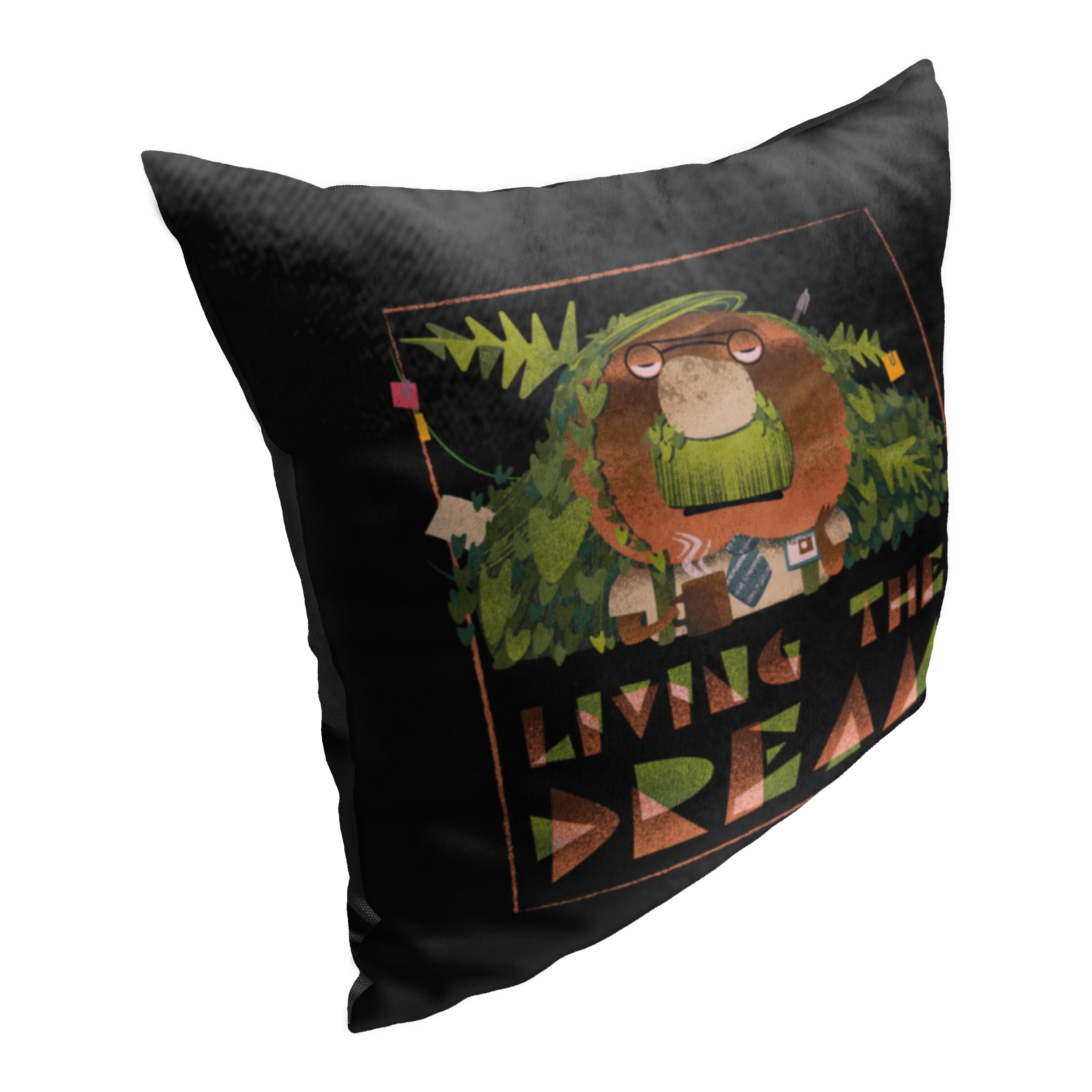 Features Fern Grouchwood with the words: Living the Dream" under him