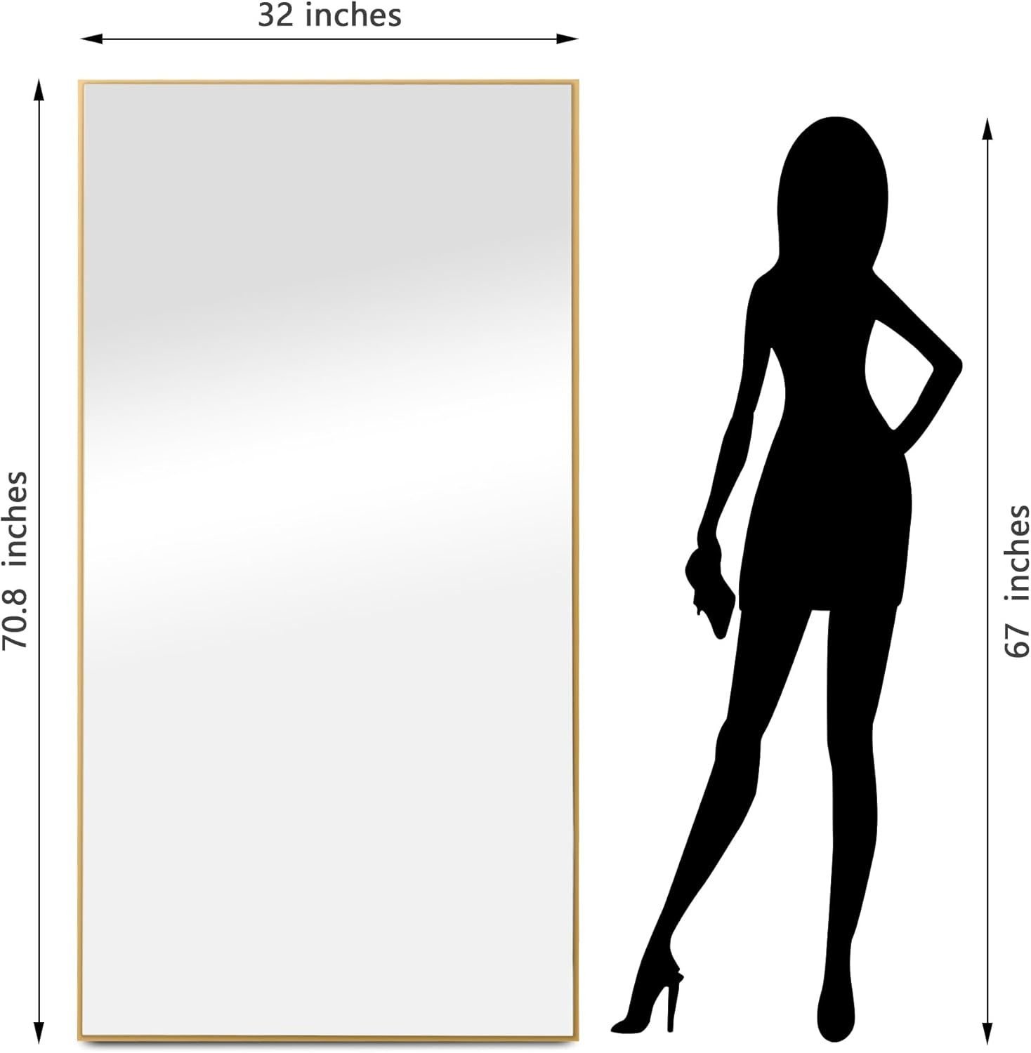 90% Glass, 10%alloyPerfect Size: Our full-length mirror is a perfect fit for any room, adding elegance and brightness to your home. When getting dressed, the standing mirror allows you to evaluate your entire outfit, including shoes and accessories.Beautiful Clear 1:1 Reflection: No Distortion! Our body mirror uses high-definition glass to show your image flawlessly, allowing you to see every detail with vivid clarity and authenticity. You can enjoy snapping photos or selfies with this full body mirror.Elegant Frame Design: Our full length mirror's stylish design not only enhances your room's aesthetics but also adds brightness and charm to your interior decor. It's more than just a mirror; it's a piece of art in your house that can bring you a nice mood every day.Versatile & Functional: A floor mirror isn't confined to one room. You can place it in bedrooms, hallways, dressing rooms, and even living rooms. Its versatility makes it a valuable addition to various spaces in your home.Easy to Install: This full mirror arrived fully assembled. It is easy to install for your needs. With the option for leaning or wall mounting, the large mirror offers flexibility to suit your space and style.