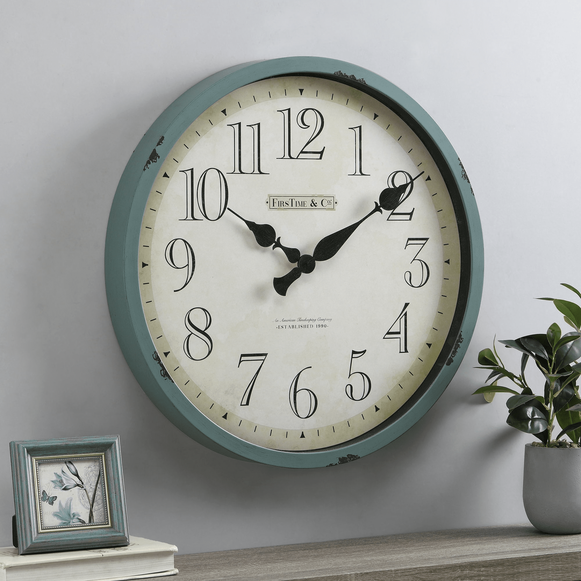 Nothing ties a room together better than a great clock, and the one you choose to place in your home should reflect your personality and style. We hear you. Bring a coastal feel into your home with our firstime & co.® bellamy wall clock. Crafted of plastic and featuring a weathered finish, black hands and an aged teal border, this seaside-chic timepiece is sure to pop with any style décor. With a grand 24' frame, this stylish clock will make for an eye-catching centerpiece in any living space. Finding the right clock to suit your style has never been easier thanks to our wide range of firstime & co.® timekeeping solutions.
