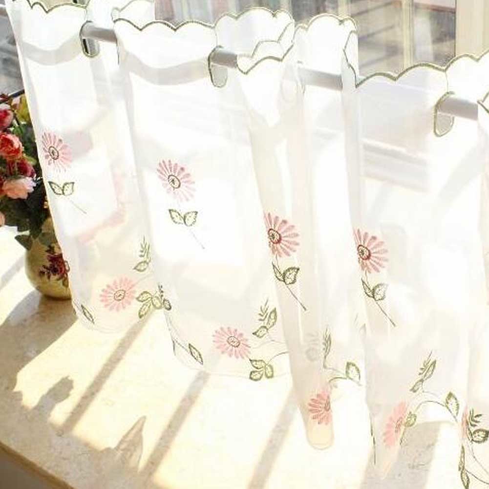 Lovely Daisy Embroidered Tier Cafe Curtain Short Window Sheer Panel for Kitchen Bathroom Door Hallway Hanging Lovely Daisy Embroidered Tier Cafe Curtain Short Window Sheer Panel for Kitchen Bathroom Door Hallway Hanging