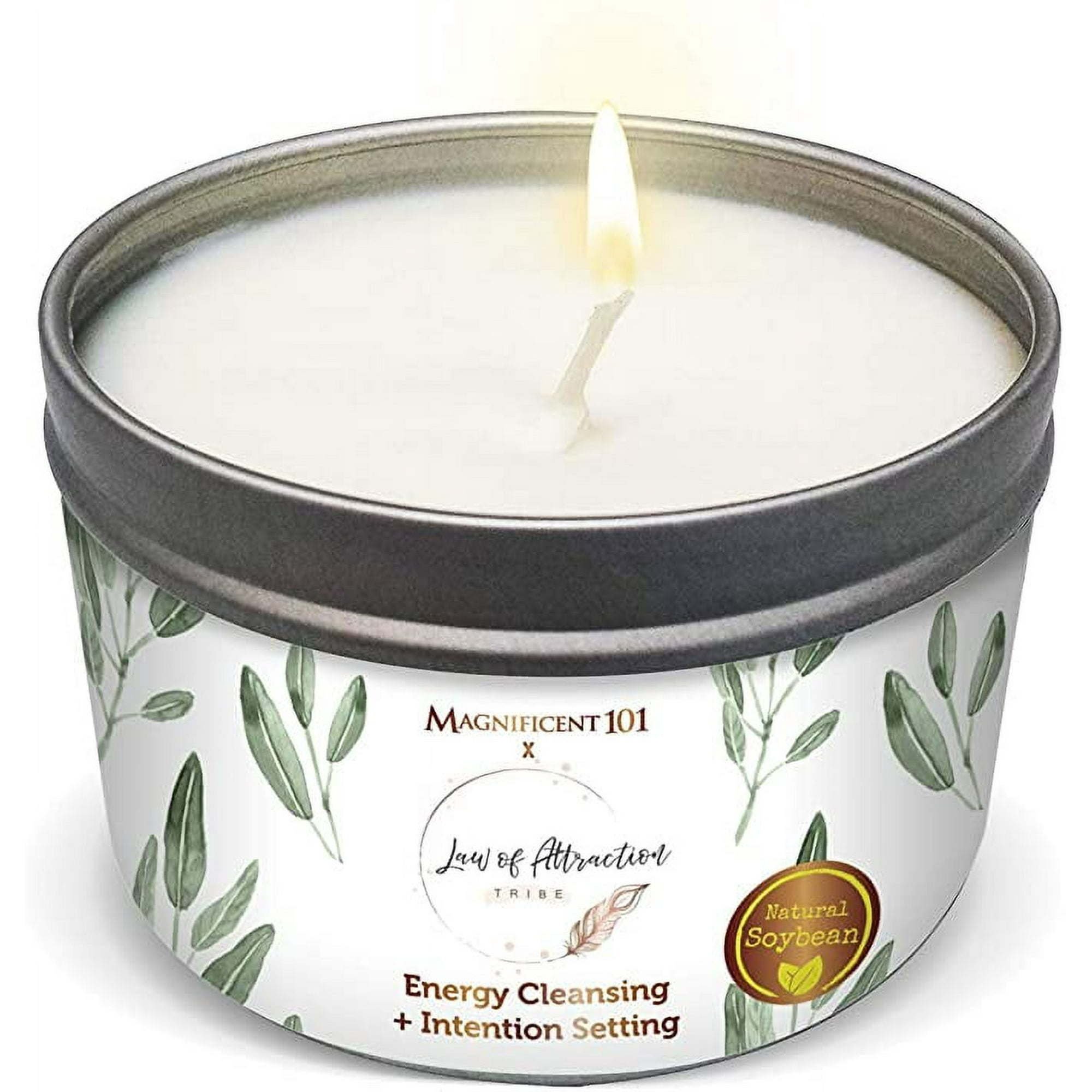 6 OZ NATURAL WHITE SAGE CANDLE FOR AROMATHERAPY − Made of naturally cultivated White Sage and 100% Natural Soy Wax (SGS and MSDS Report available - No Petroleum or Paraffin Wax). This blend of earthy sage creates a natural harmony in the home and body. Perfect to smudge away negative energies and set a new intention. Fill in the blank with your intention! Love, light, and positive energy goes into every candle. * SMUDGE AWAY NEGATIVE ENERGIES − Smudging is a cleansing ceremony that involves burning white sage in a manner that fills the home with the fragrance of the smoke. It is used to clear negative energy from people, places, or even objects and can be done as often as needed. Research shows that thujone, found in sage, is mildly psychoactive and enhances intuition. * CLARITY FOR INTENTION SETTING − Start your smudging ritual by decluttering your home and taking the time to think about your intention. It should be something you would like for your home or space, something meaningful for you. Choosing to sit and let go of negative thoughts in a ritual like this improves your mental clarity, allowing you to set a genuine intention for yourself. * HOME ENERGY CLEANSING − It’s a good idea to have a door or window open while smudging. The negative energy and negativity have to have someplace to go! * VIBRATION RAISING − Sage can do wonders to increase relaxation and reduce stress because it’s filled with negative ions, directly linked to an improved sense of well-being. * CHAKRA HEALING − The Latin word for sage salvia stems from the word heal. It's devoted to clearing, protection, and blessings. The use of sage can be traced back nearly 2,000 years to Indigenous Americans and shamans, who used it to release or cleanse negative energy from conflicted, angry or sick people. This healing candle was produced for smudging, purification, stress relief, anxiety soothing and ultimately providing an energy boost.