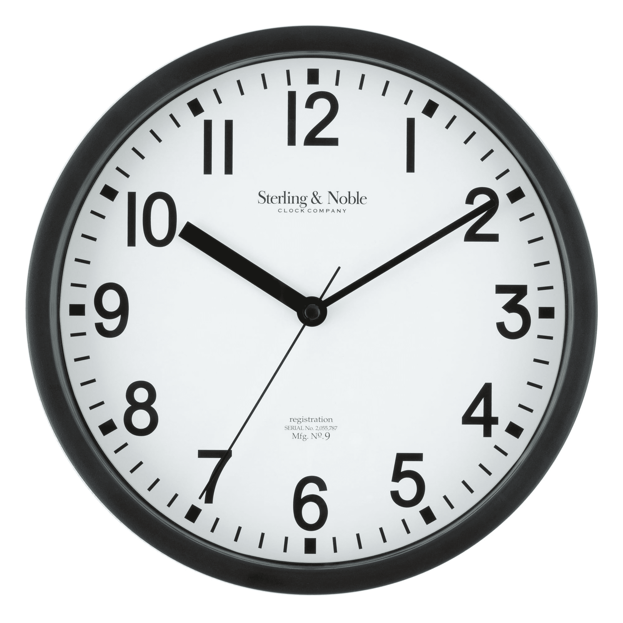 This mainstays basic indoor black round wall clock is 8.78" in diameter and offers a quality quartz movement with a glass lens. The analog clock has bold arabic numbers with metal hour, minute, and second hands which makes it easy to read. This is a reliable time-keeping device that will coordinate with any modern decor. Use this clock in a child's playroom, den, living room, or office.