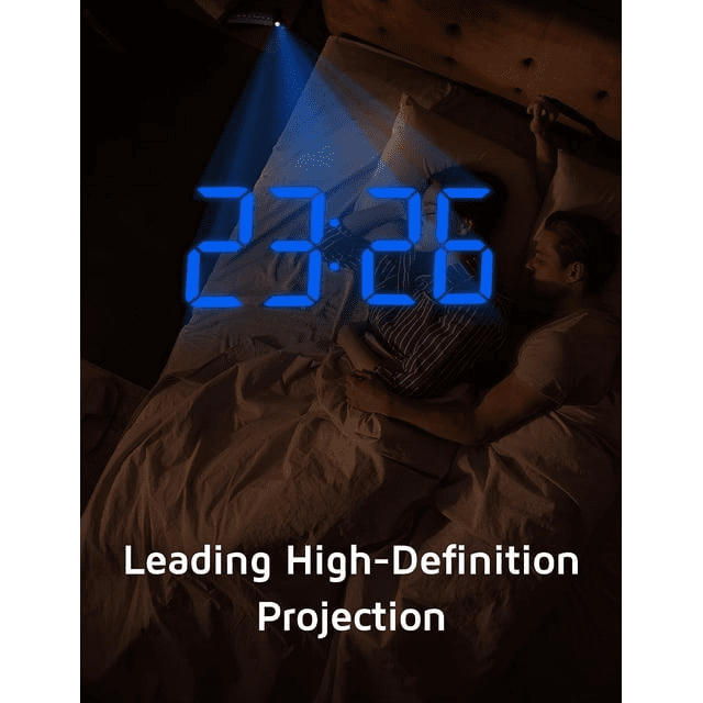 ✔ [large led display & 3 brightness levels] -- the curved screen with 3.4*1.7inch large digits is easy to read in the dark, even when you are not quite awake or without your glasses. With 3 adjustable levels, you can dim the brightness at night to prevent disturbing sleep, and brighten it during the day for clear viewing. It allows you to separately adjust the brightness of the led display and the projection display.
