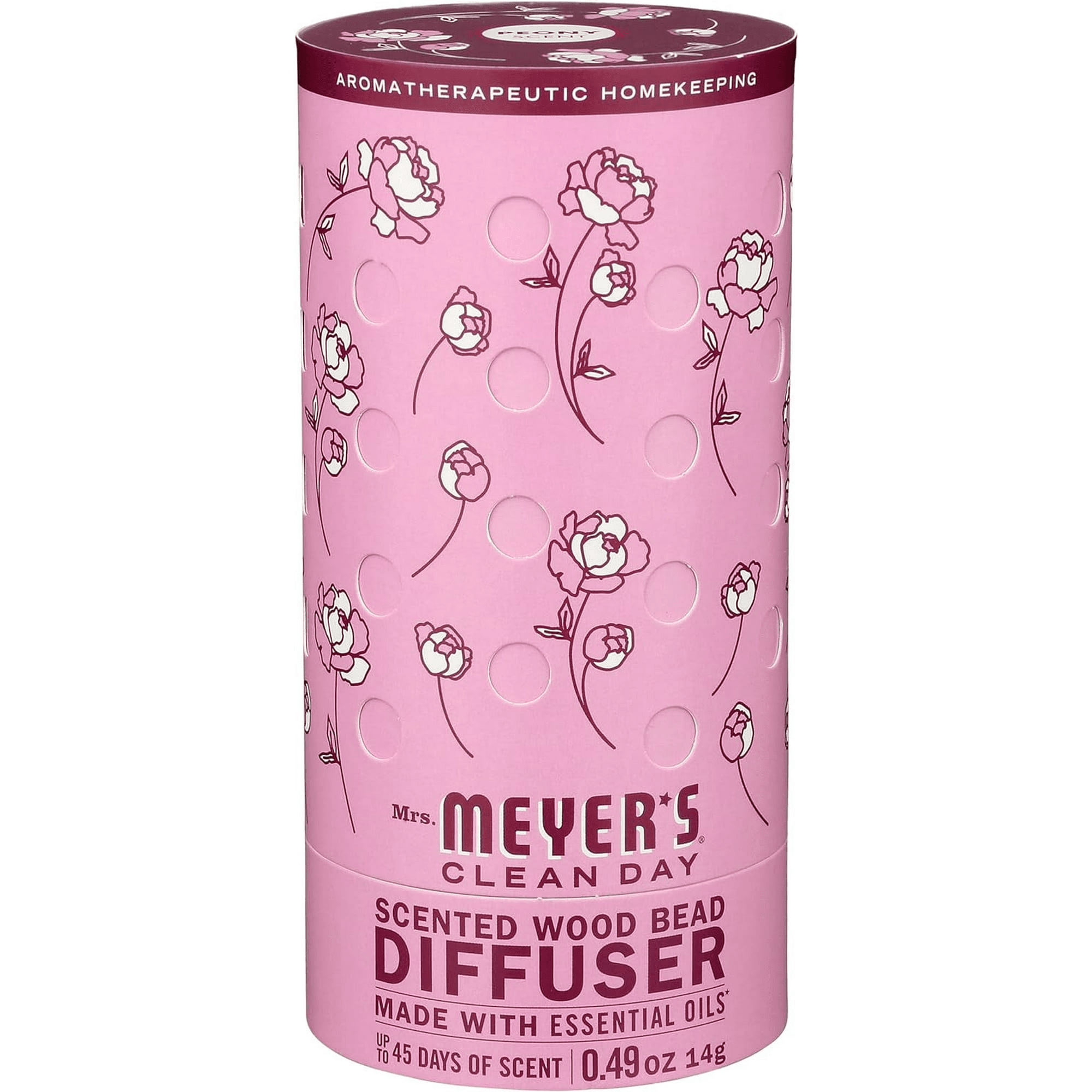How about a sensible, clever, and easy way to keep your home spaces full of delightful. Garden-inspired peony scent? Mrs. Meyer's clean day scented wood bead diffuser is precisely that, and it looks lovely at the same time. It's a charming and decorative wooden diffuser automatic air freshener, and is also adjustable and simple to use. The wooden beads bring the scents of the outdoors in and release the bold, heady bright and floral fragrance of peony for up to 45 days. Oh, lovely peony! It' s easy and fun to refresh, by just giving it a shake. This peony air freshener has been made with essential oils and other thoughtfully chosen ingredients, and of course there are no artificial colors or phthalates . And - as always - our formulas are cruelty-free and never tested on our animal friends. Yes, the room freshener container looks great, and it also has a recyclable cardboard exterior, while the beads that release the fragrance are made from repurposed wood. Perfect for walk-in closets, bedrooms, your home office, the kitchen or even as a bathroom air freshener - works great as a gift too. And to make what's already great even better, you can choose from a bunch of other garden-inspired scents, as well as products such as body lotions laundry detergents, soap, tin candles, and more. Mrs. Meyer’s - rooted in goodness.