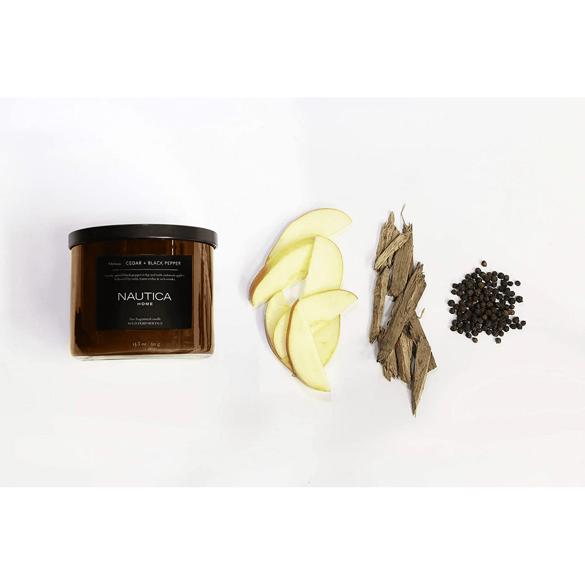 Introducing the nautica 14.5oz soy wax blend 3 wick candle - orion cedar & black pepper, a true gem from the bold performance collection. Embrace the spirit of exploration and adventure with this masculine fragrance, inspired by international sands and the passion of nautica. Ambrosia apple, kaffir lime, and grapefruit peel create an inviting opening, leading to the allure of orris, black pepper, and oak moss in the mid-layer. The base notes of cedarwood and clean musk bring balance to this 14.5 oz soy wax blend candle, thoughtfully designed with three wicks for a prolonged burn.