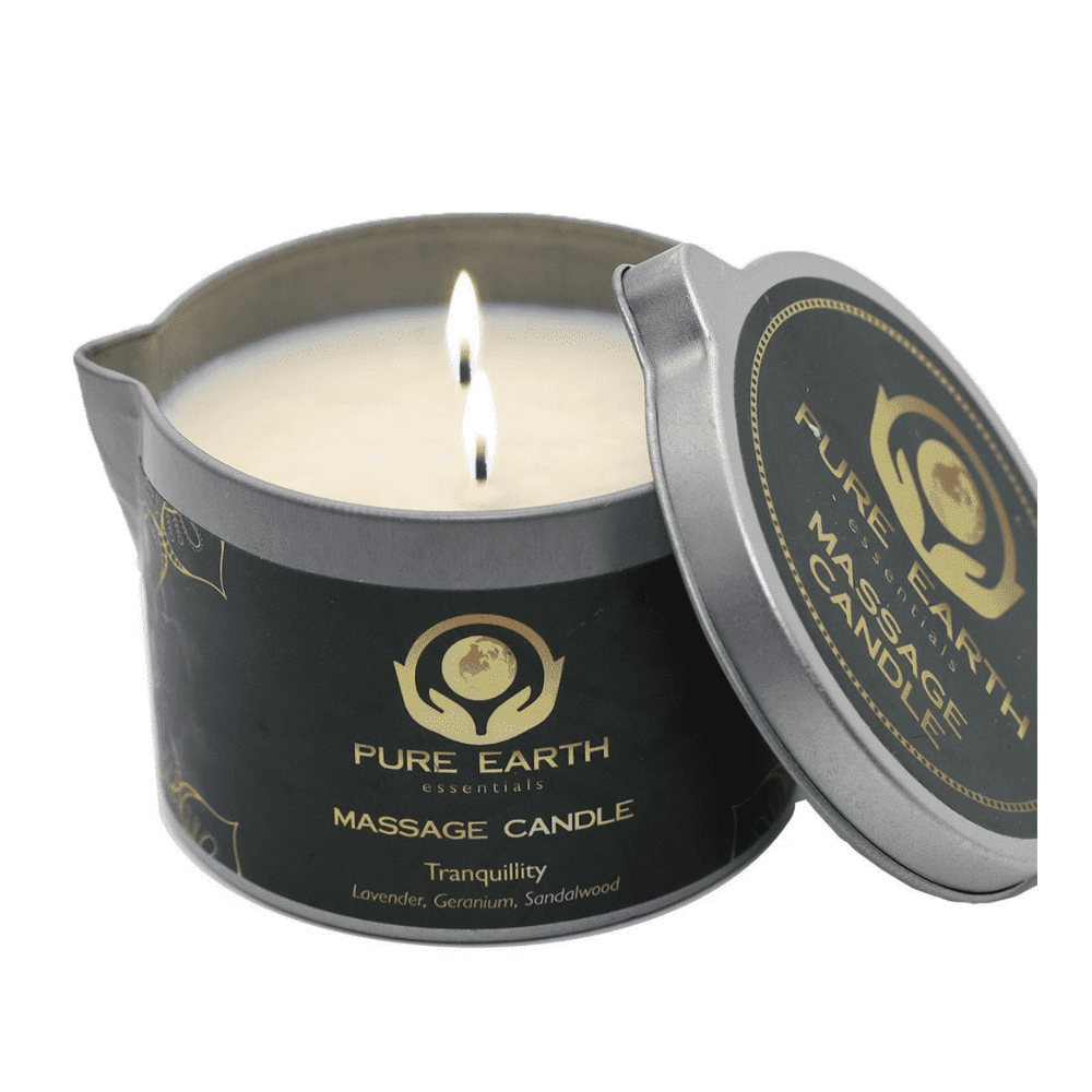 Pure earth essentials massage candle is natural & vegan with key active ingredients of cocoa, shea butter, argan, jojoba, sweet almond oil & vitamin e for nourished and moisturized skin.