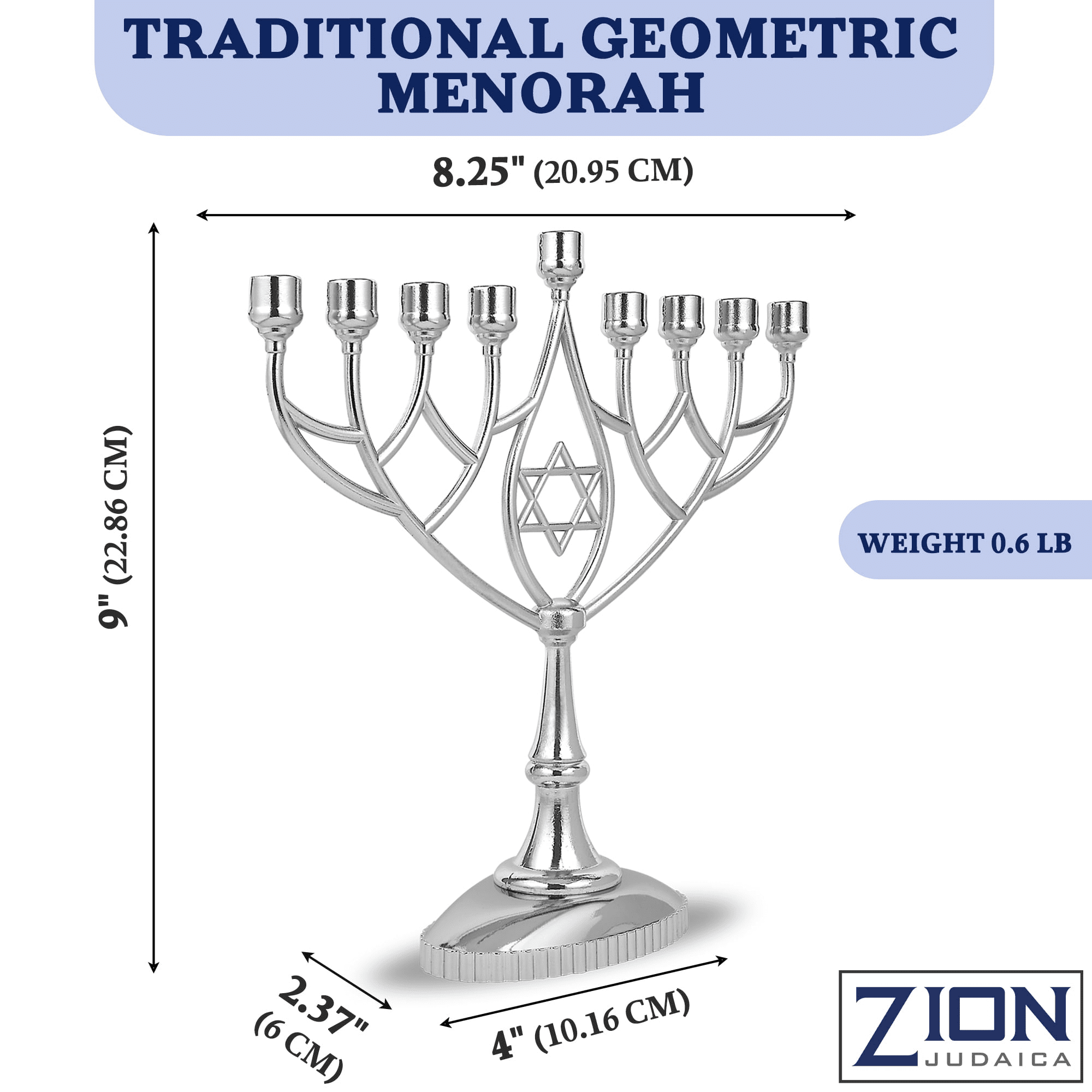 Traditional Classic Geometric Hanukkah Menorah 9" Silver Plated Chanukah Candle Minorah Fits Standard Hanukah Candles by Zion Judaica Traditional Classic Geometric Hanukkah Menorah 9" Silver Plated Chanukah Candle Minorah Fits Standard Hanukah Candles by Zion Judaica Traditional Classic Geometric Hanukkah Menorah 9" Silver Plated Chanukah Candle Minorah Fits Standard Hanukah Candles by Zion Judaica