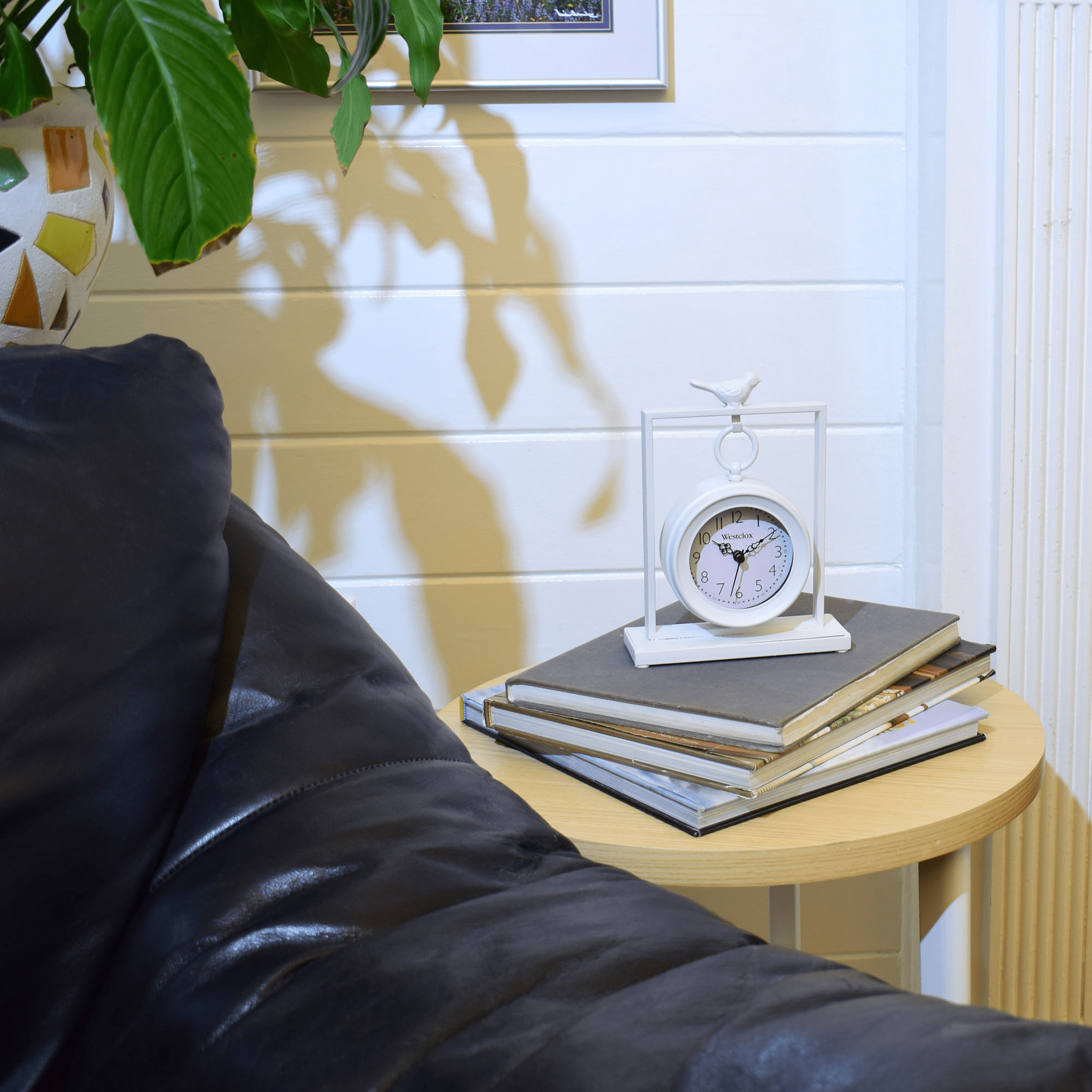 Home > Westclox White Vintage Style Metal 8" Bird-Watching Analog QA Table Clock
